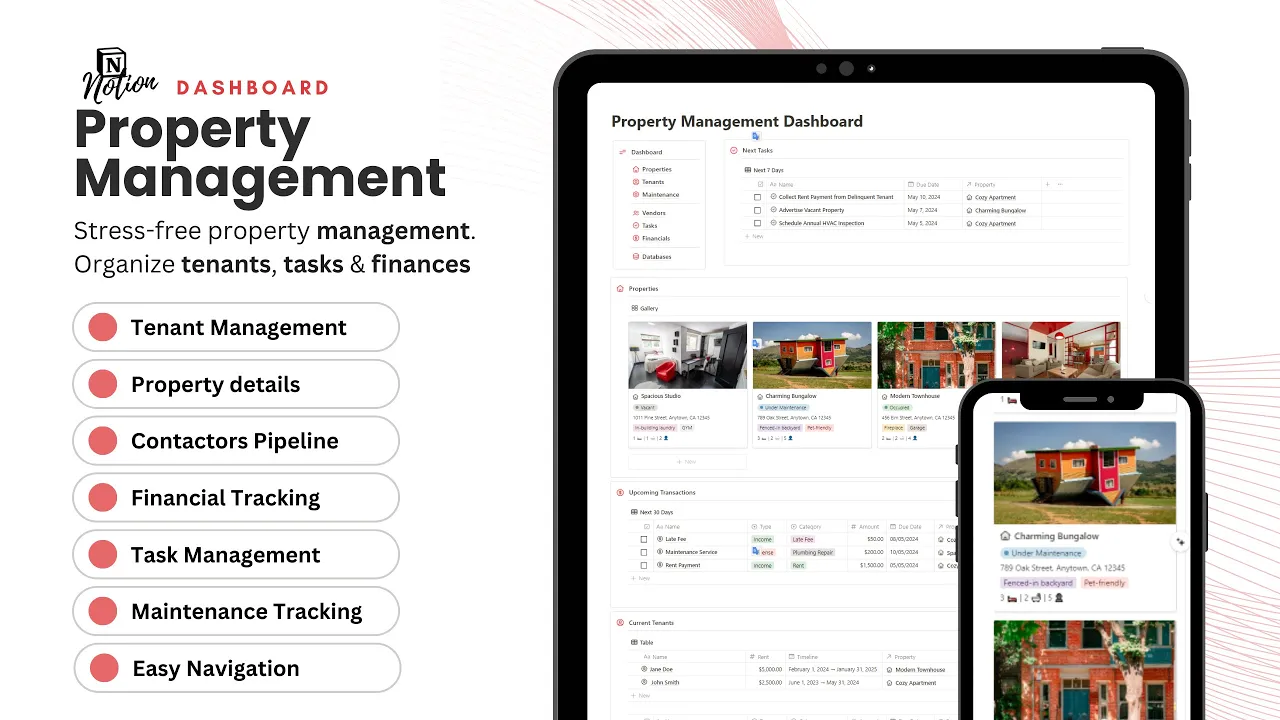 Notion Dashboard for Property Management: Organize Tenants, Track Income & Expenses